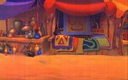 The Bazaar appears here but with different merchants and slight changes to scenes from the first film that tone down suggested violence. Farouk was also replaced with a less hostile merchant named Razoul.