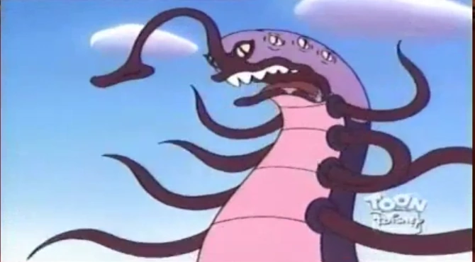 It is a large worm that can burrow underground. It is very strong, even against magic as shown through its confrontation with both Genie and Iago (when Genie gave Iago his powers). Its sharp teeth can eat through any and everything, though it has a preference for stinky rotten food. It is a good sniffer and can wrap its flexible snake like body around large structures. It can also suck food through its nose.